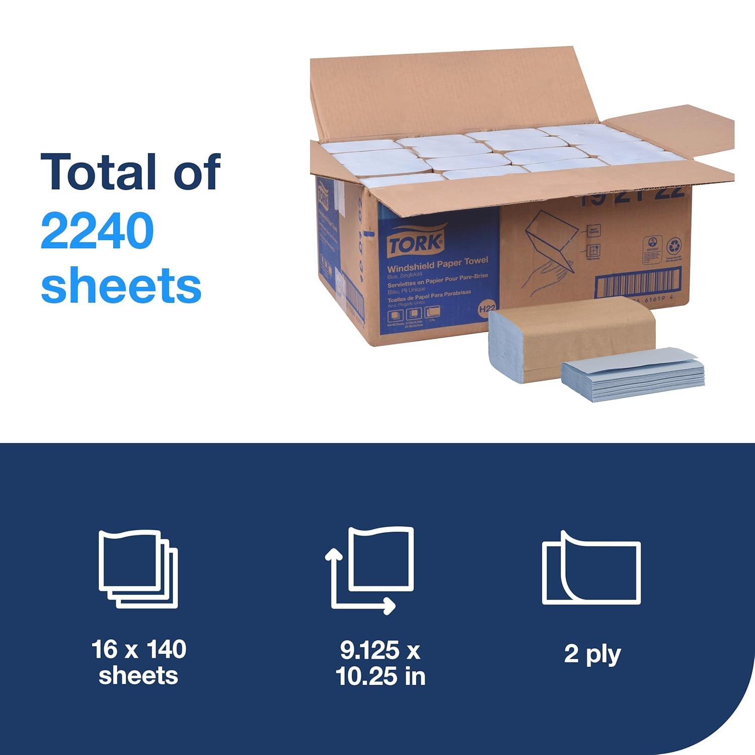 16 packs, 140 sheets each. 2 ply. Folded size L 5.1″ W 9.1″ Unfolded size L 10.3″ W 9.3″ Compatible with H22 dispensers.