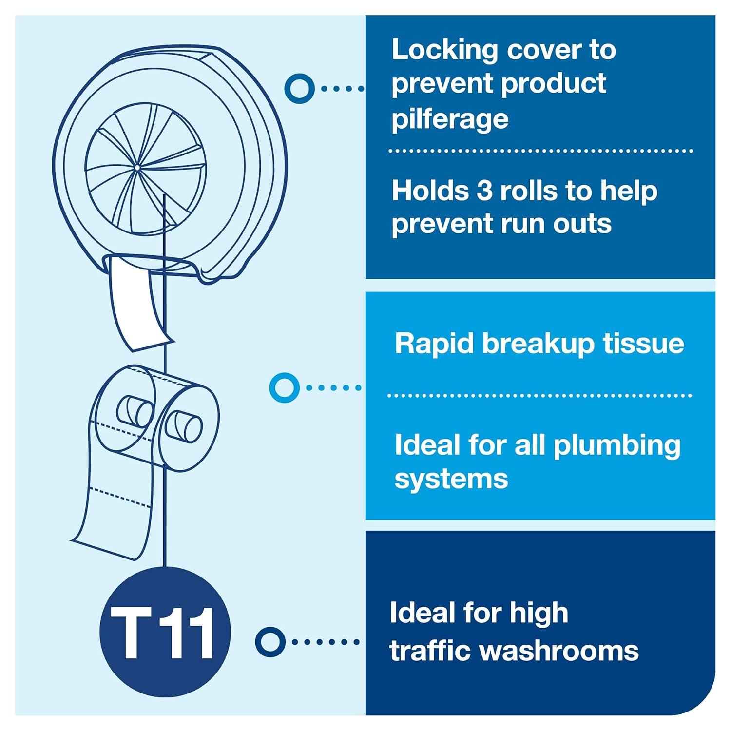 W 14.1″ H 14.6″ D 6.3″ Material: Plastic. Color: Black. Suitable for T11 refills from Tork.